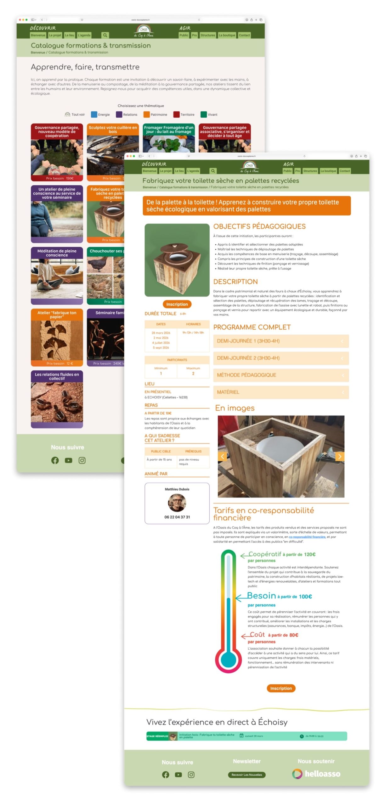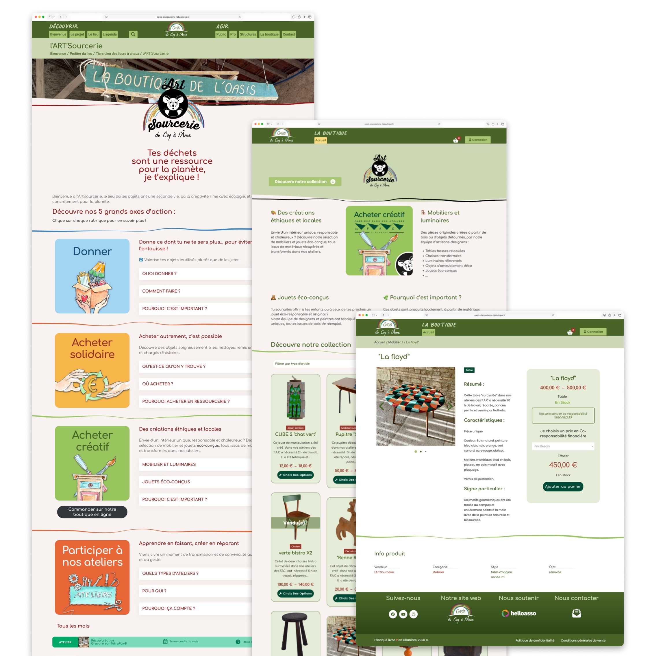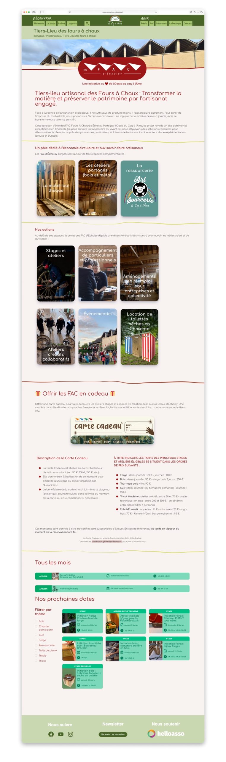 - Client / contexte : Oasis du coq à l’âme (collectif / tiers‑lieu). Travail en continu depuis 2021.