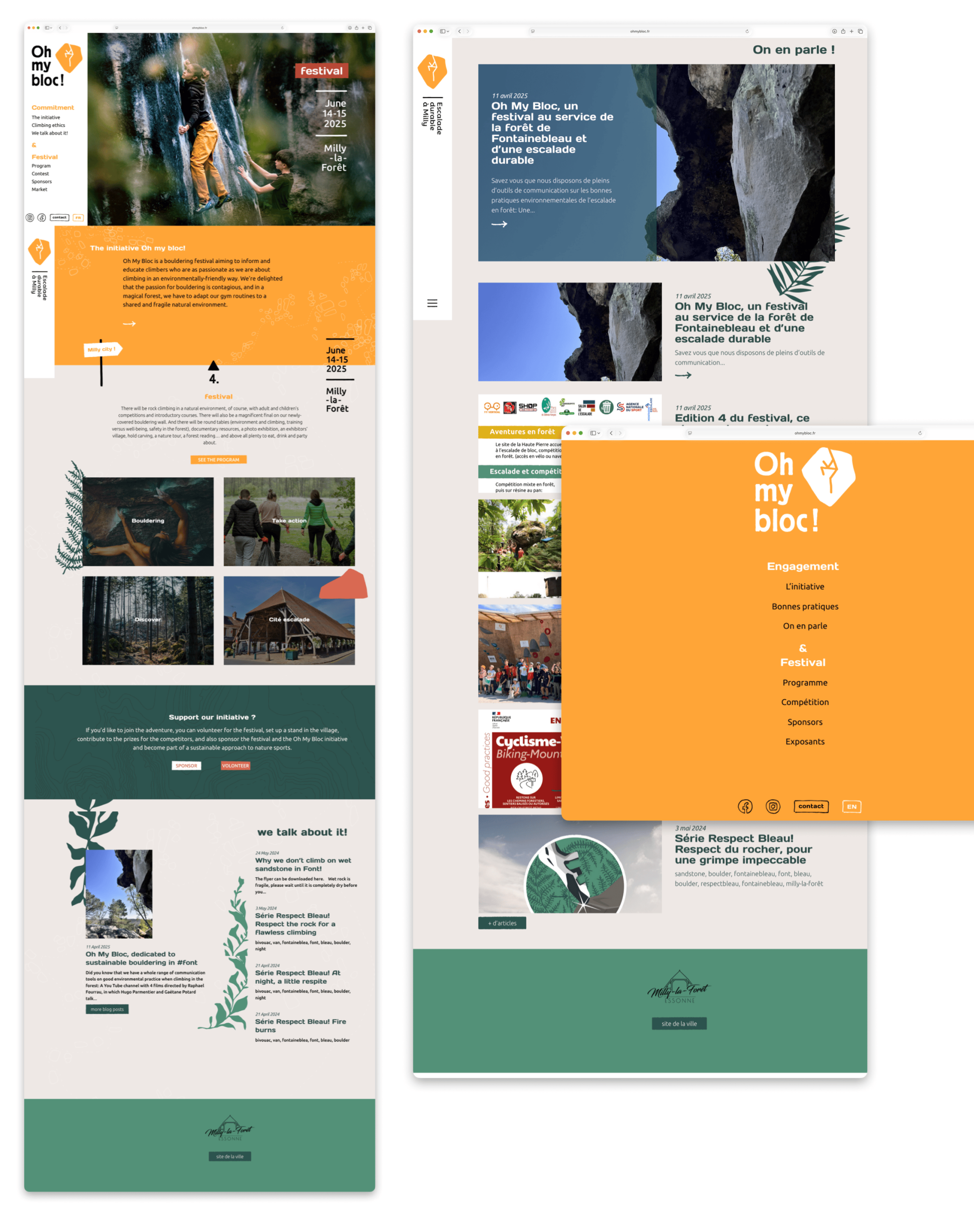 • Client / contexte : Oh My Bloc ! (festival d’escalade durable à Milly‑la‑Forêt, né en 2022).